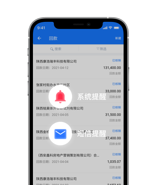 账款管家的系统日历提醒、短信提醒功能,将应收款到期、应收款逾期信息推送给业务负责人,助力企业提升回款效率