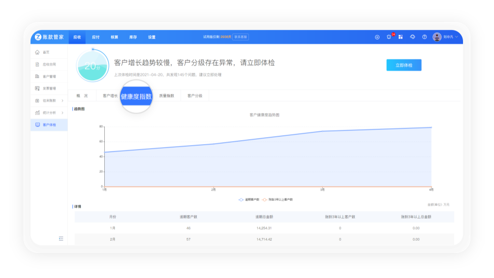 对客户账龄、回款金额、赊销额度、发生业务的次数等数据进行分析,帮助企业筛选优质的客户减少坏账、呆账的现象发生。