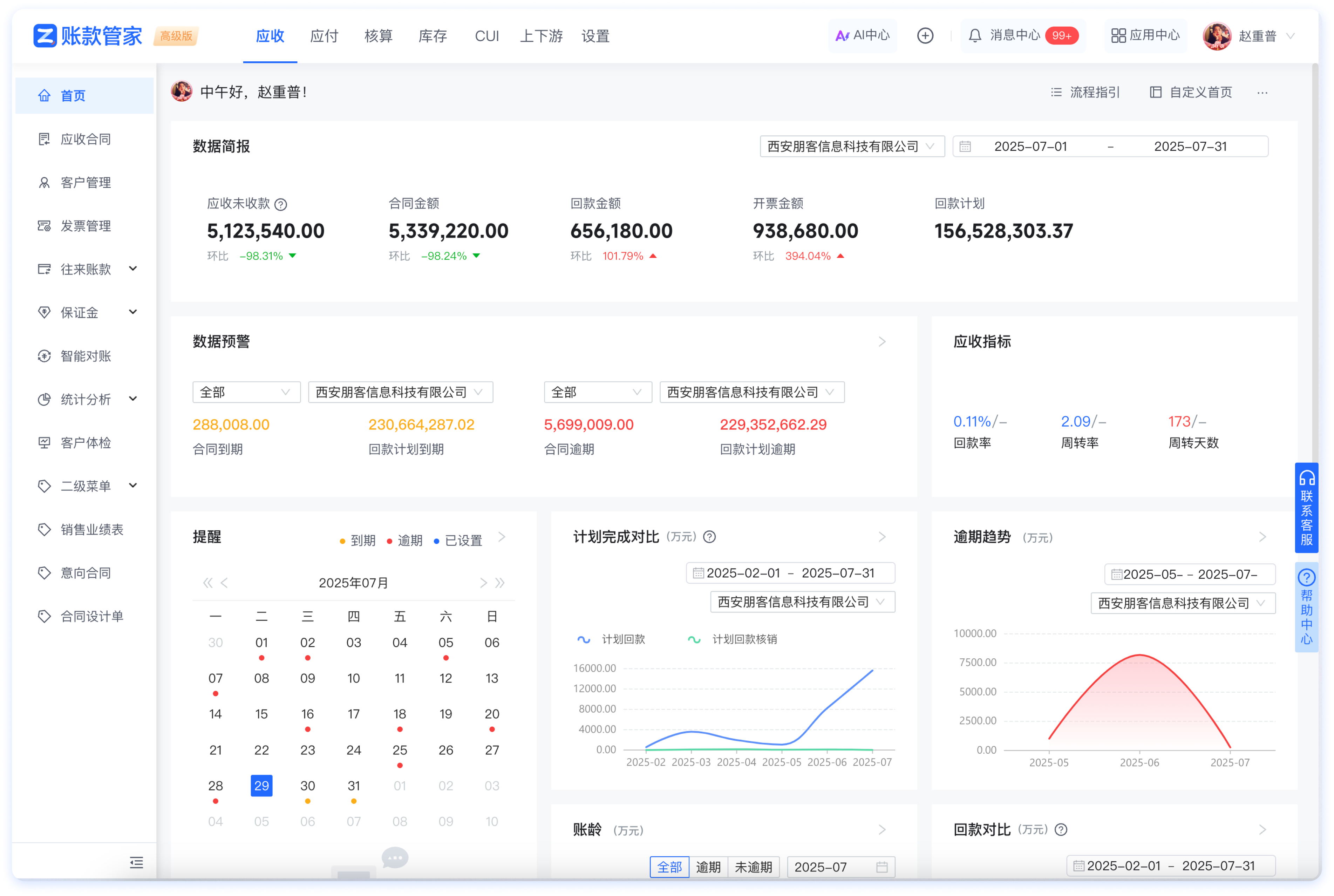 (2)到期/逾期提醒:通过系统内置的提醒功能(数据预警、日历提醒、消息提醒),在应收账款到期/逾期前第一时间自动通知业务和财务人员,确保及时响应。